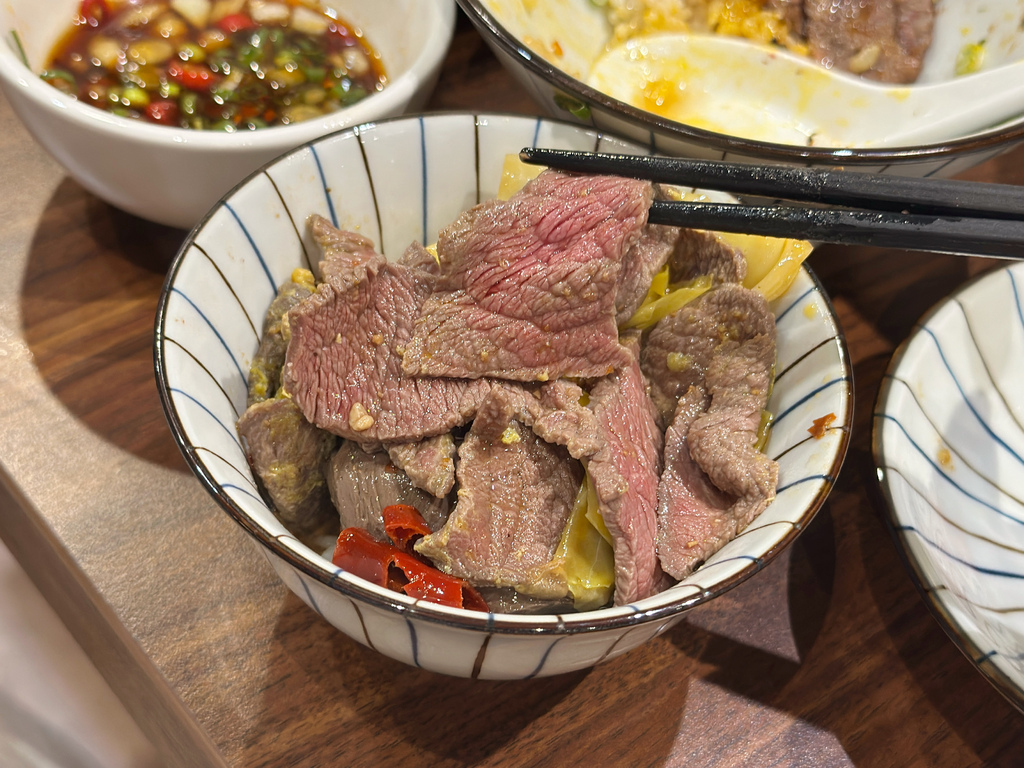 第一層油花比較少,因此拌入蛋液涮煮更添滑嫩度